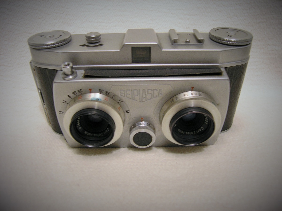 Bauart: Film: Hersteller: Baujahr: 1955 Optik: 2X Tesar 37,5 mm f/3,5. Objektivbasis 63 mm Verschluss: 2X Zentralverschluss, gekoppelt | |||